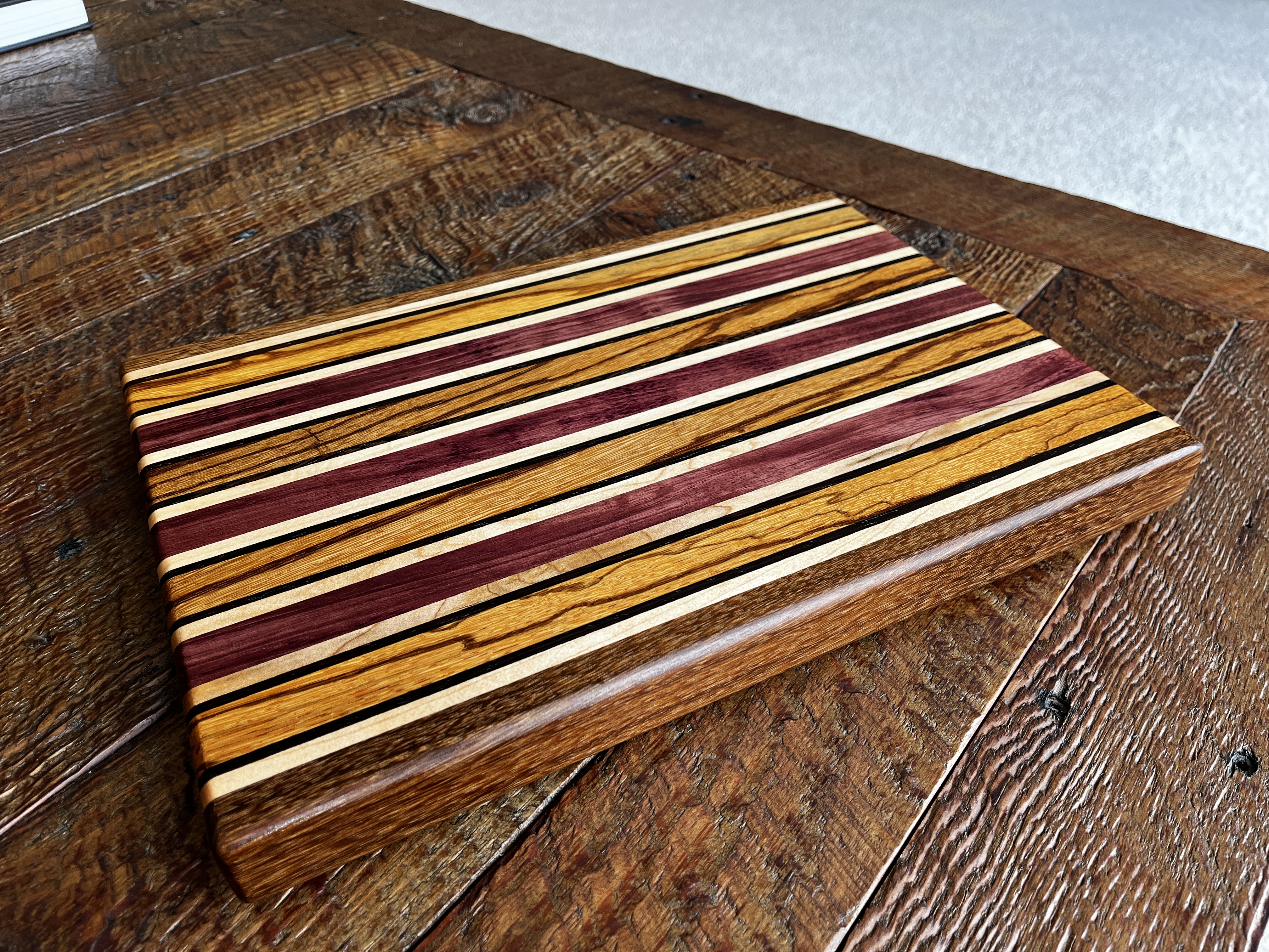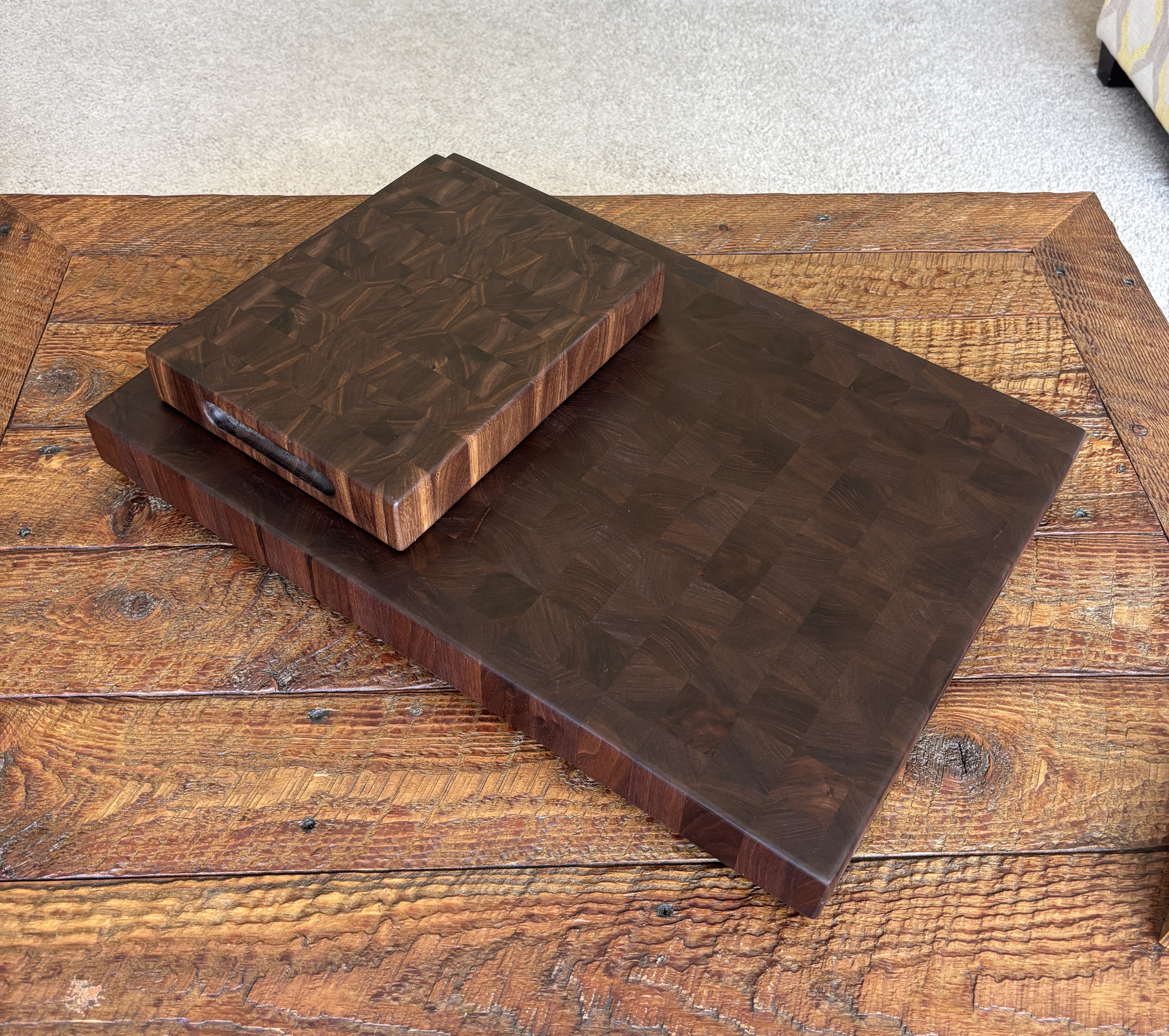 My boards and small goods collection features handcrafted pieces that blend precision, creativity, and everyday functionality. These items are often made through custom requests in which clients choose the wood species, size, pattern, and engraving that best fits their needs. I also create many of these pieces for local markets and community events, where they serve as approachable introductions to my work. Every board and small project is shaped, glued, sanded, and finished by hand, giving each item its own character while ensuring it will last for many years. These projects form the foundation of my woodworking practice and allow me to experiment with different techniques, color contrasts, and finishing approaches in a focused and practical way.