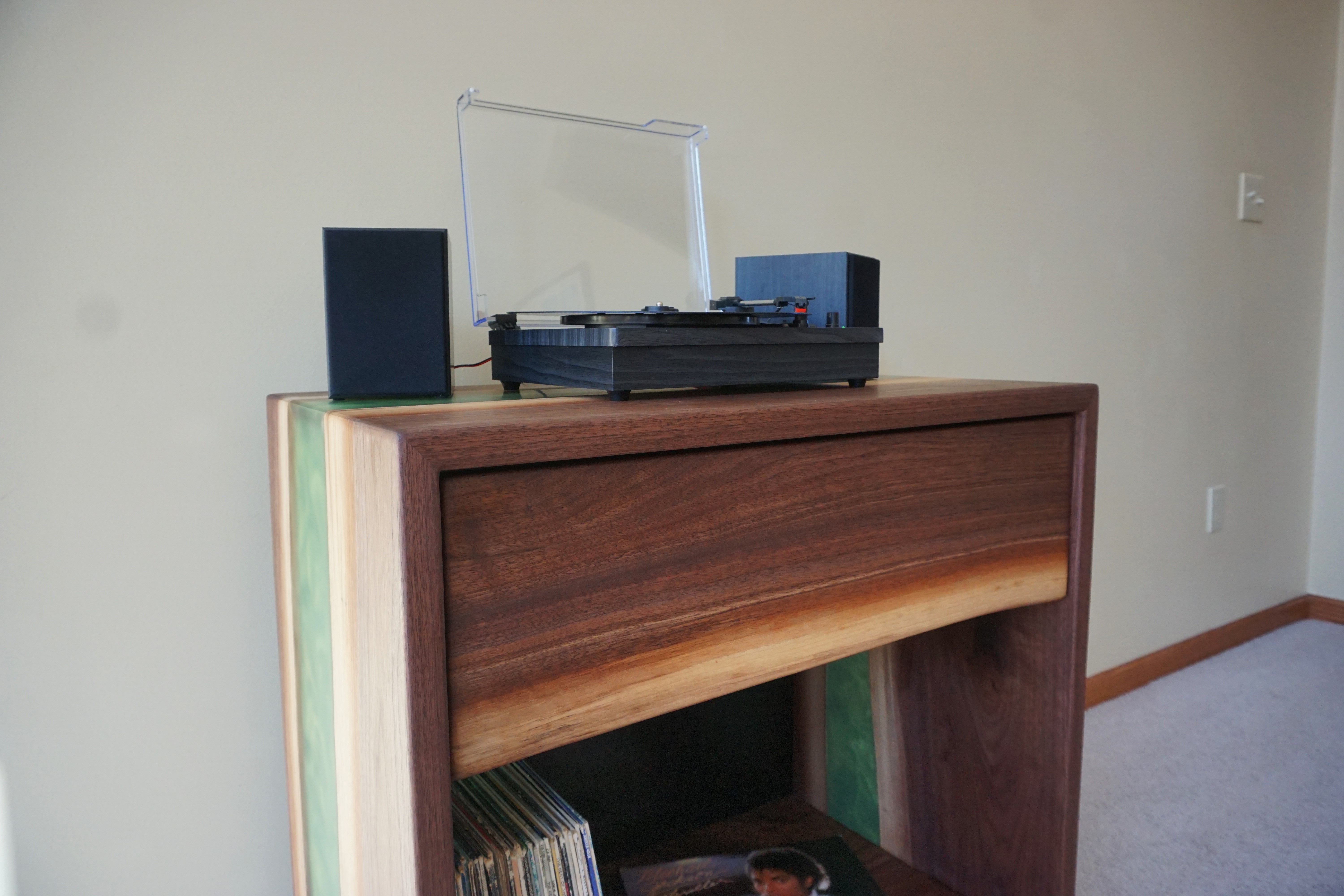 My furniture and epoxy work highlights the larger and more complex side of my craft. These projects include modern hardwood tables, record cabinets, creative epoxy pieces, and fully custom furniture designed for specific clients. Each build begins with a clear concept that focuses on structure, visual balance, and long-term durability. I select materials that bring out the natural flow and color of the wood, and I shape the design around the way each piece will be used. Epoxy projects provide an opportunity to create movement, depth, and color in a way that sets the work apart. Whether the project is for a client, an event, or my own creative development, each completed piece reflects careful planning and dedicated craftsmanship.